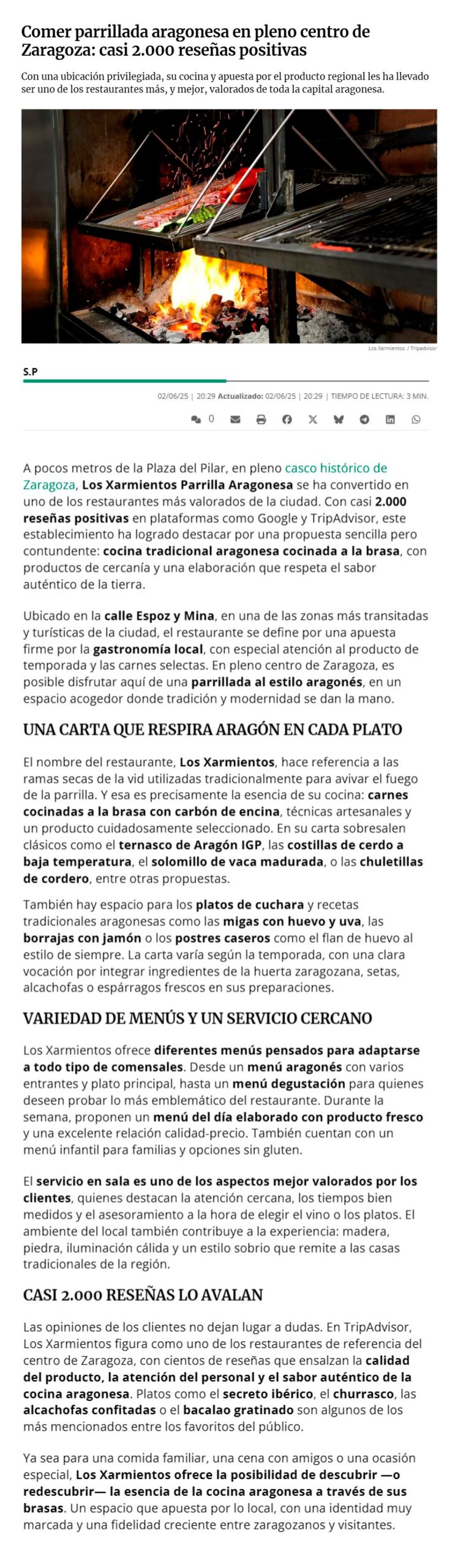 La Mejor Parrillada Aragonesa en el Corazón de Zaragoza – Hoy Aragón